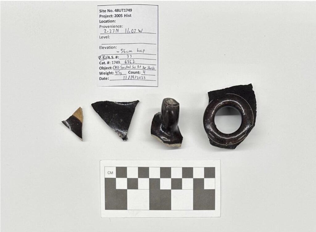 Hello everyone! George here again. I want to tell you a bit about Chinese Brown-glaze Stoneware, or CBGS for short. CBGS is very common among ceramic types in Chinese diaspora archaeological sites. It is often characterized by the brown color of the glaze on fired containers (as one would figure by the name), but the color can vary. Chinese utilitarian stonewares range from various shades of green to even black, with most being in various shades of brown (Brott 1987). According to Brott, the glaze on CBGS can vary from a shiny, mirror-finish to a more matte, uniformly dull glaze. Sometimes, the glaze doesn’t even cover the whole vessel! On vessel forms with lids, they are always concave and unglazed.