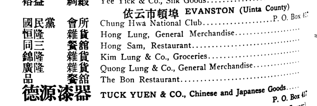 Figure 1: Select Chinese-owned businesses from Evanston, WY advertised in the International Chinese Business Directory of the World (Wong 1913:1550).